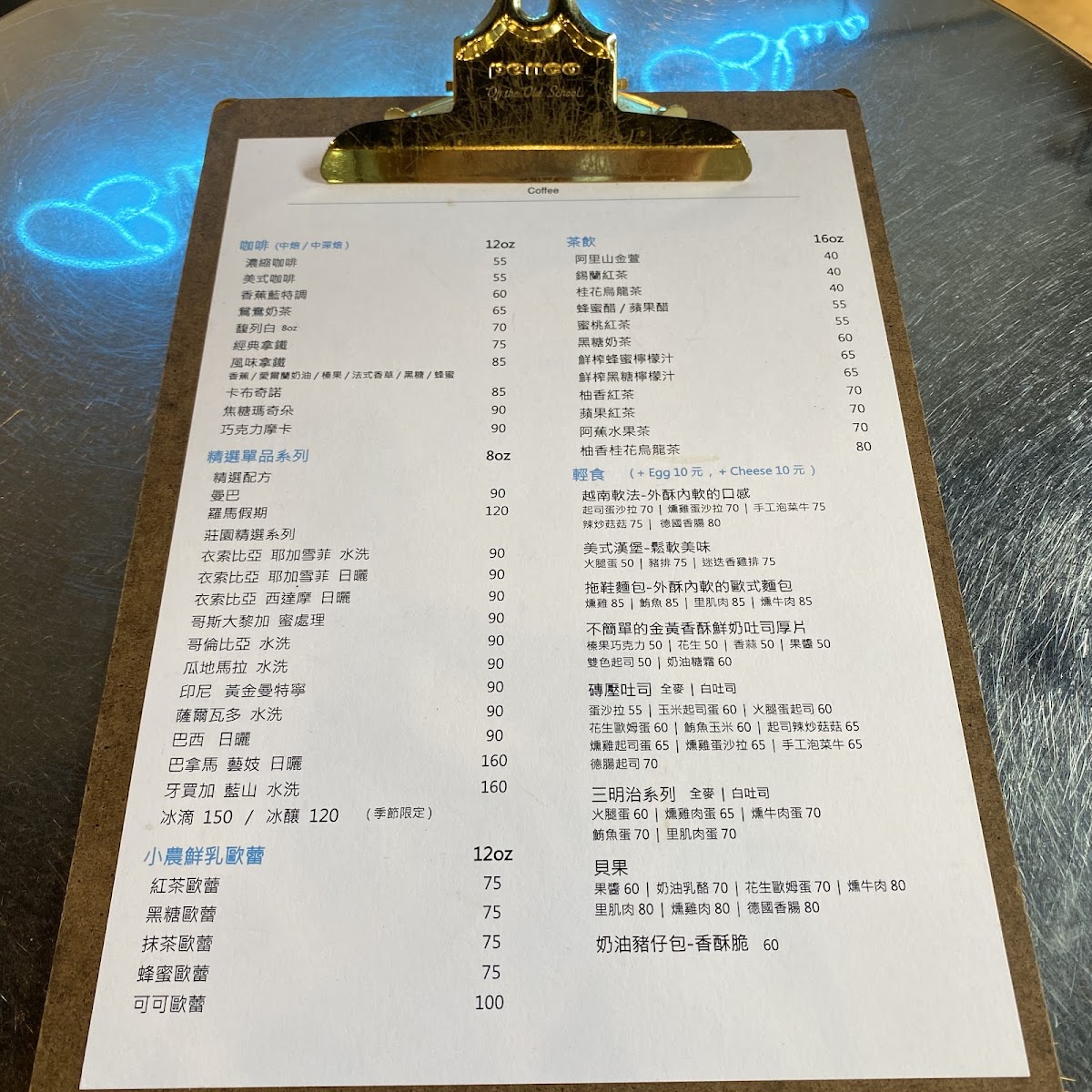 Banana Blue Coffee不限時咖啡廳內湖店 Menu